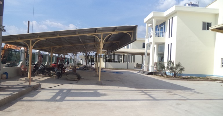 The factory itself boasts a column height of 9m at the column point and rises to a rooftop height of 13m, providing sufficient vertical clearance for large machinery, heavy equipment, and inventory storage. The concrete floor of the factory is reinforced to handle heavy loads, supporting up to 15 tons per sqm, which makes it an ideal solution for industrial operations that involve heavy equipment or bulk materials. The security house located at the entrance ensures that the site is well-monitored, with a signal board positioned right at the main gate to improve visibility and ease of access.
